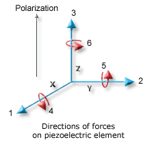 當壓電陶瓷元件被施以電流壓力(電壓),其尺寸發生變化。當被施以機械壓力時,它產生電荷。如果電極不短路,則會出現電壓與充電現像。施加力與產生的反應之間的關係取決於: