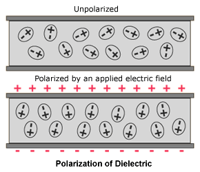 如果材料含有極性分子,在沒有施加電場的情況下,他們一般都處在隨機的方向。外加電場的極化材料,會重從定向它的極性分子的偶極矩。 這將減少板和增加平行板結構的電容之間的有效電場。電介質必須是一個良好的電氣絕緣材料,以盡量減少任何直流洩漏的電流通過電容器。