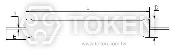 型號 額定功率 (W) 最大工作電壓 (KV) 阻值範圍 (Ω) L ±0.5mm E ±3mm D ±0.5mm d ±0.1mm