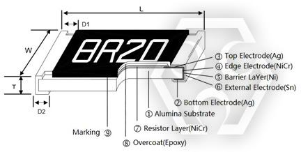• Resistance tolerance 1% for 0603: 3 digits marking in E96 (E96 series except E24 series)