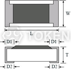 Codes L (Unit: mm) W (Unit: mm) T (Unit: mm) D1 (Unit: mm) D2 (Unit: mm) Weight(g)/(1000pcs)