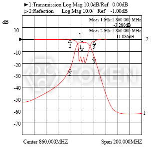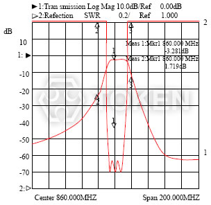 Center 860.000MHz (-3.281dB) & (1.719dB) Span 200.000MHz)