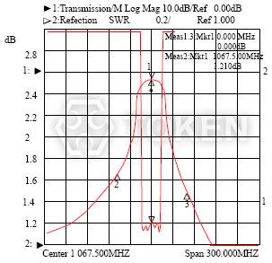 Center 1067.500MHz (0.000dB) & (1.210dB) Span 300.000MHz