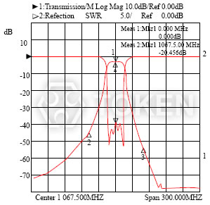 Center 1067.500MHz (0.000dB) & (-20.456dB) Span 300.000MHz)